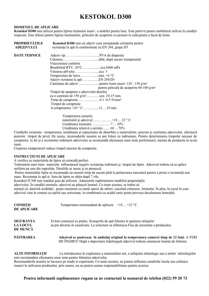 Adeziv monocomponent in dispersie, pe baza de PVA.