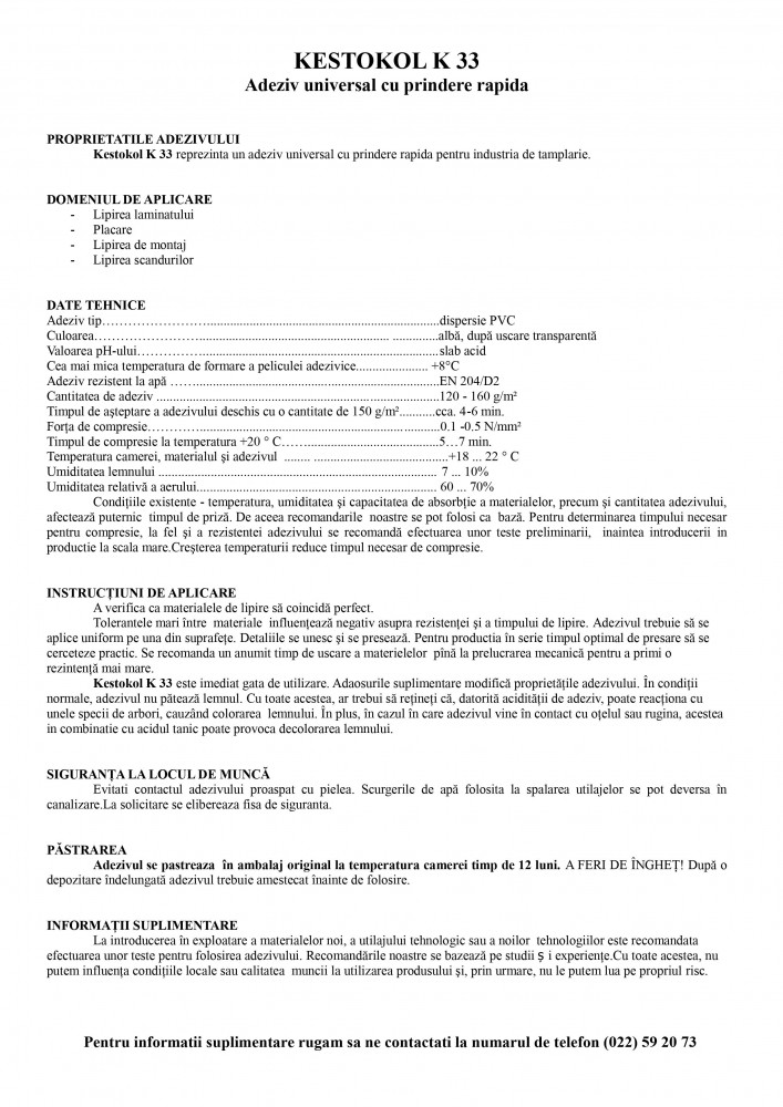 Adeziv cu viscozitate ridicata, pentru alipirea furnirului, clasa D2.